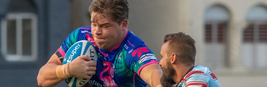 A scrum penalty won on the edge of their own 22 finally alleviated the pressure for the visitor’s, allowing flyhalf Bayley Kuenzle to kick over halfway for a lineout. And when an overthrow evaded jumpers from both sides for Kuenzle to pounce, race through the line and feed De Wet Roos, the wily co-captain attracted three defenders in his wake before popping a delightful reverse pass for Apaola Tea Lama to run in the first try.